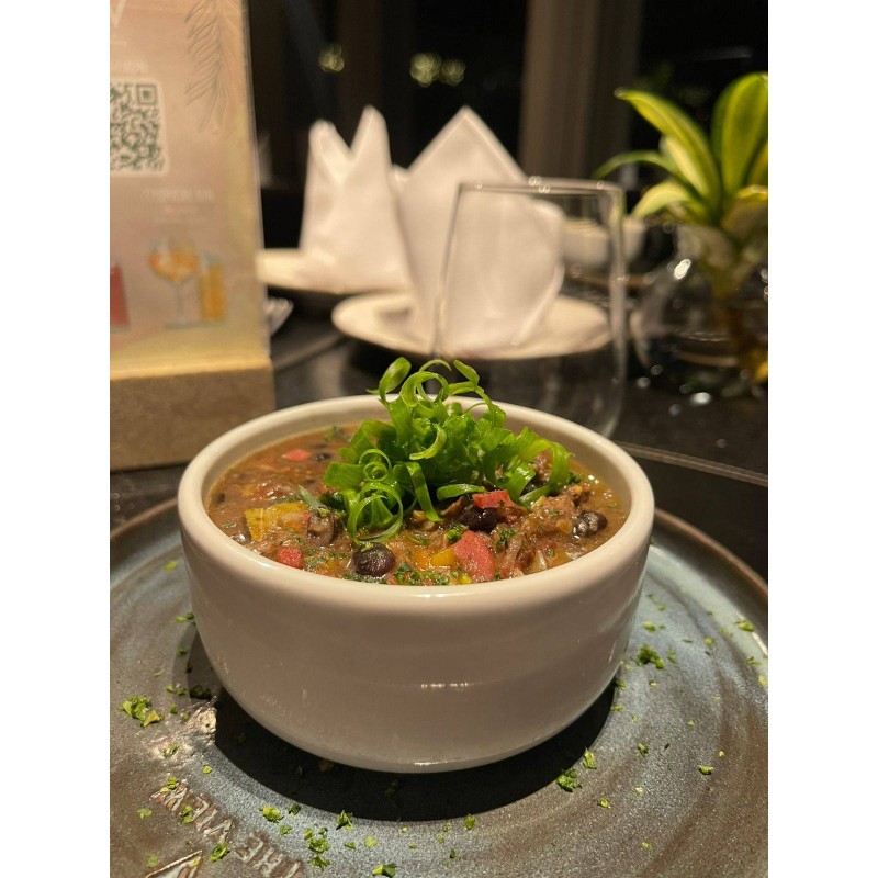 Caldinho de Feijao Preto com linguiça e bacon picados